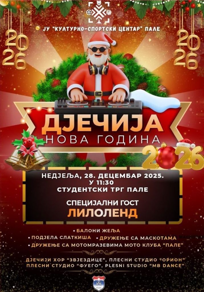 Културно-спортски центар Пале и ове године организује посебан новогодишњи програм намијењен најмлађима, доносећи им радост, забаву и празничну чаролију.