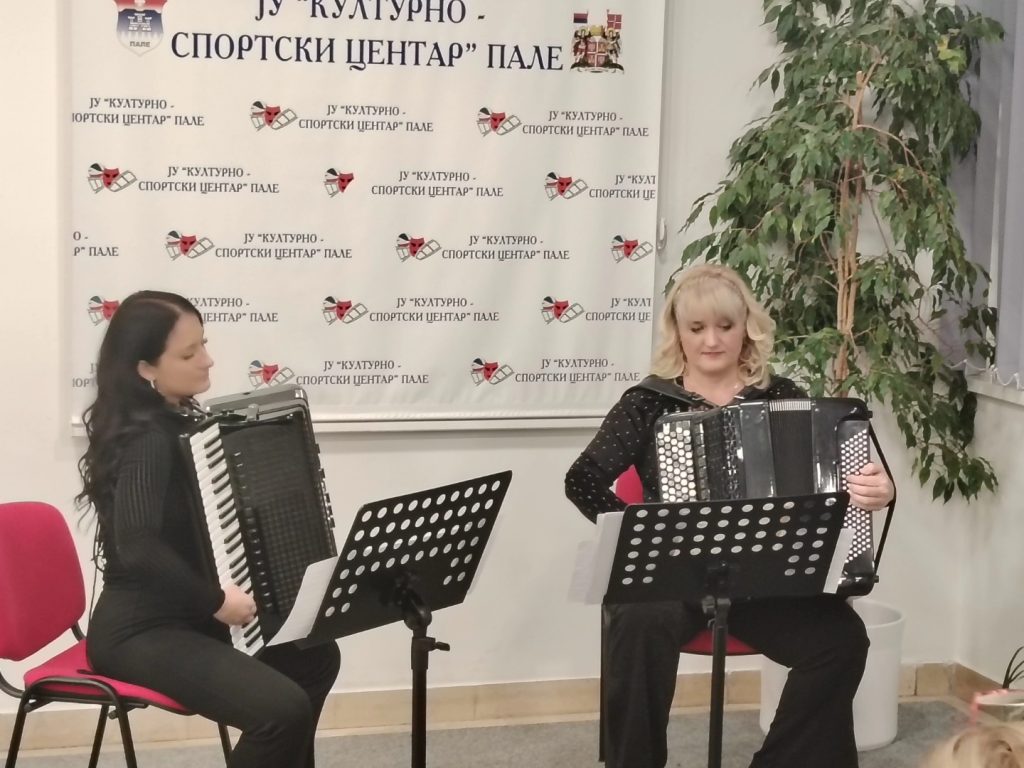У галеријском простору Културног центра Пале вечерас је одржан изузетан концерт за љубитеље хармонике и класичне музике. Током једночасовног програма, професорице музике Данијела Газдић и Азра Халитовић представиле су разноврстан репертоар и показале завидан ниво вjештине и знања, истичући све могућности које хармоника може да пружи.