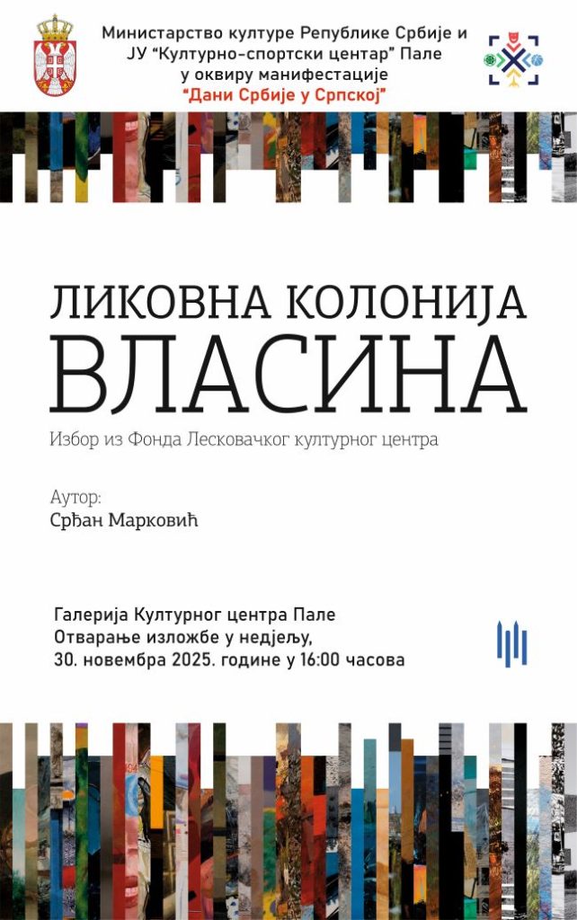 Министарство културе Републике Србије и Културни центар Пале, у оквиру манифестације „Дани Србије у Српској“, представљају изложбу радова из Фонда Лесковачког културног центра.